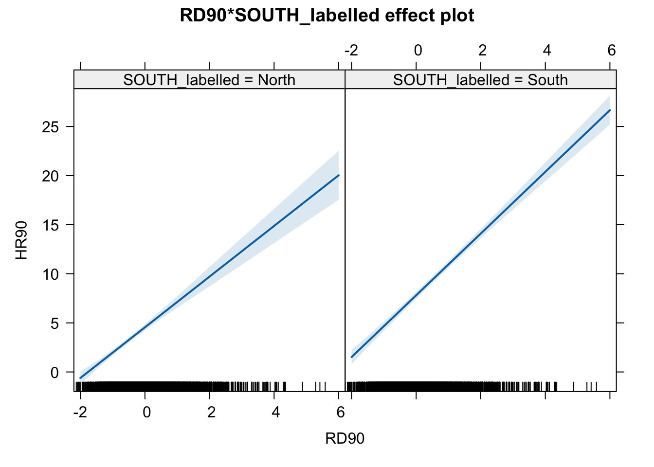 ## lm(formula = HR90 ~ RD90 + SOUTH_labelled + RD90:SOUTH_labelled,